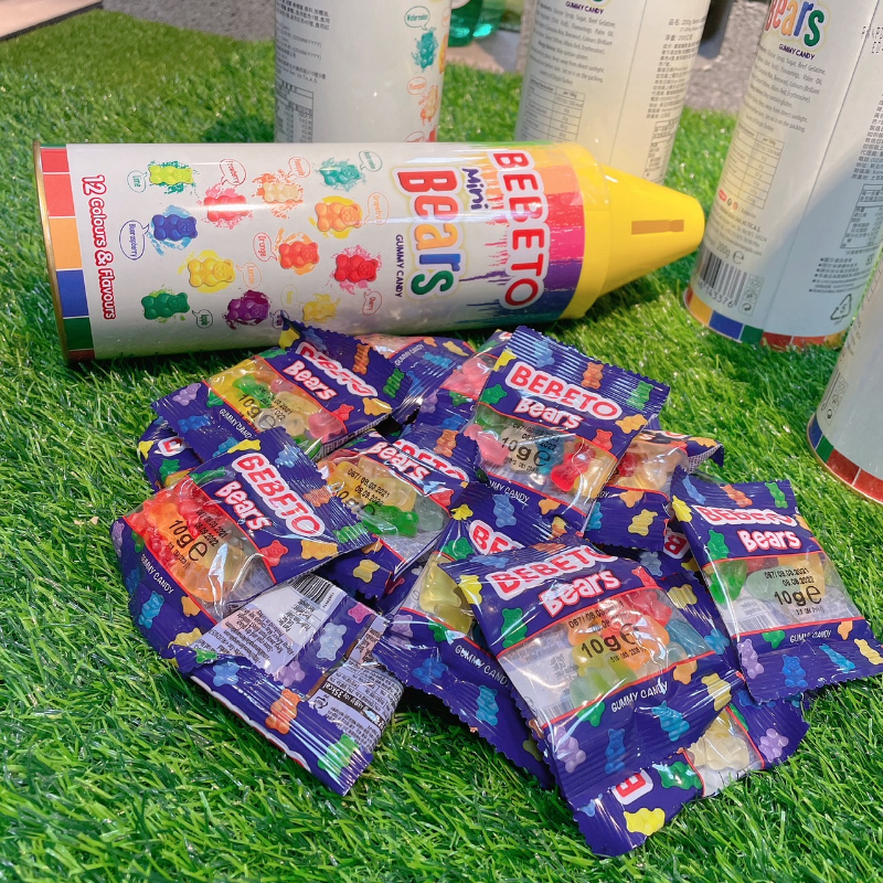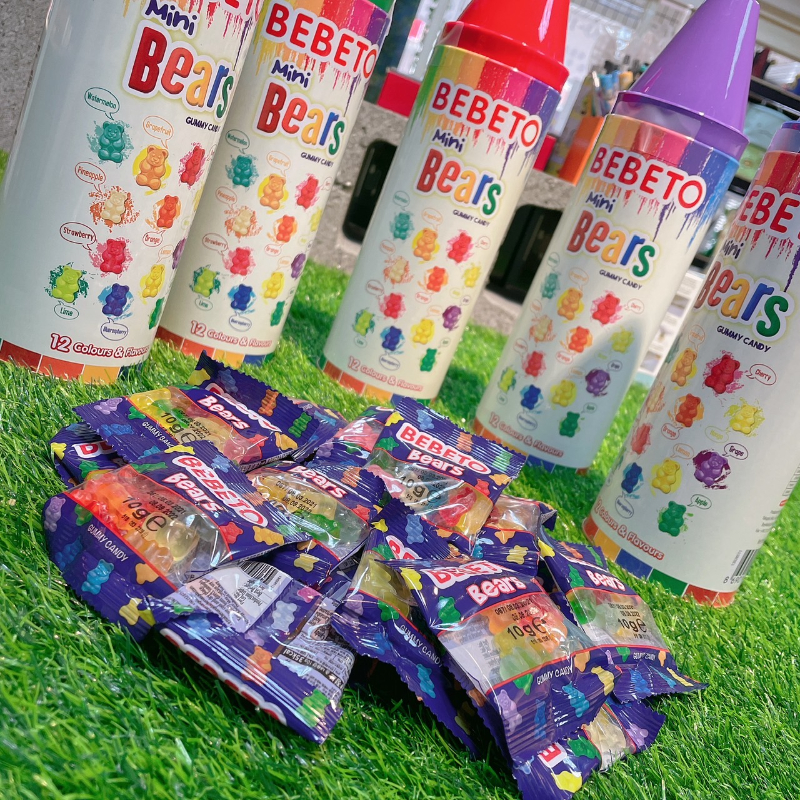 土耳其Bebeto 蠟筆造型存錢桶罐水果熊熊軟糖200G