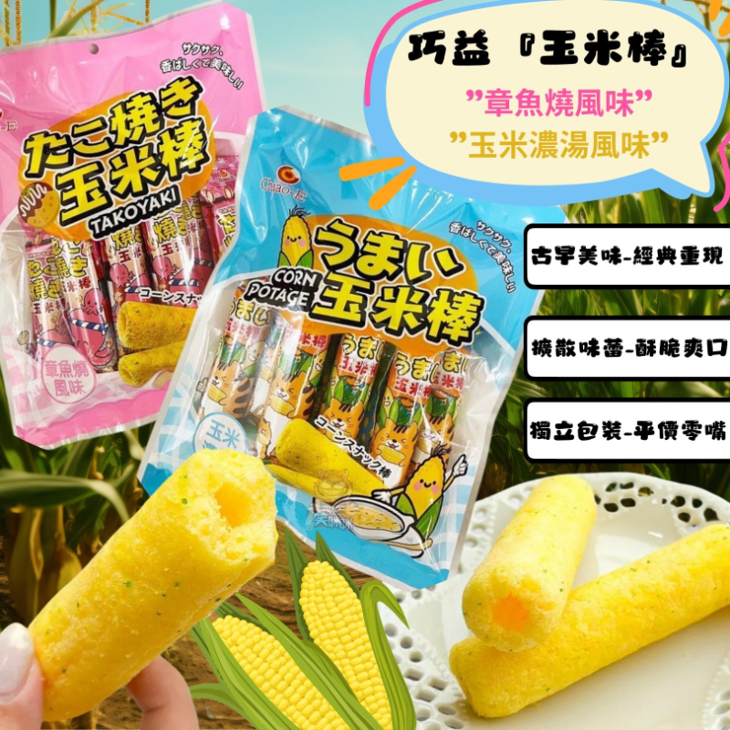 香濃玉米棒,根本就是用吃的玉米濃湯!每嚼一口都可感受到濃郁玉米香擴散於口齒之間獨立包裝攜帶便利,鹹甜的口感讓人想一口接一口吃下去 !成分:玉米(非基因改造)、棕櫚油、香料、葡萄糖、砂糖、奶粉、蛋粉、香菜、鹽